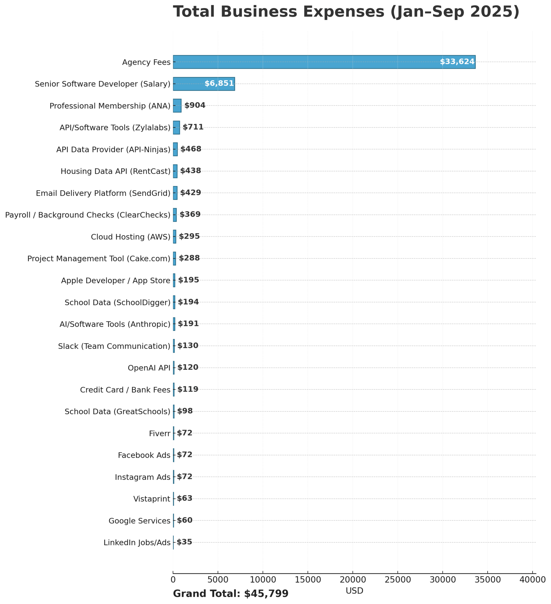 Nearly $46K spent in 9 months to keep Map My Pay running and improving.