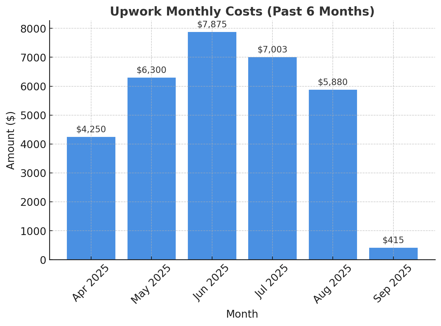 By September, Upwork spend dropped because we have yet to release a $4,000 payment to our old agency for switching our backend.